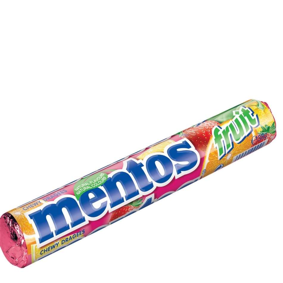 Mentos fruit, Frucht, Kau-Bonbon, Dragee, 38g Rolle